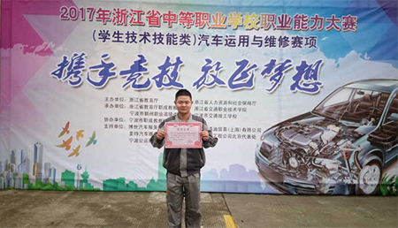 4月9日至11日,2017年浙江省中等職業(yè)學校職業(yè)能力大賽“汽車運用與維修”項目比賽在寧波舉行,交通學校學生李佳浩喜獲汽車機電維修競賽項目一等獎,并成功晉級國賽。
