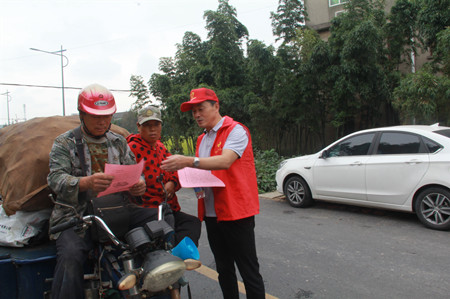 10月13日上午8:30,職能黨支部的25名黨員志愿者準(zhǔn)時(shí)前往結(jié)對(duì)共建的王江涇鎮(zhèn)東風(fēng)村開展主題宣傳活動(dòng)?;顒?dòng)現(xiàn)場(chǎng),黨員志愿者們穿著紅馬甲、手捧宣傳資料,在東風(fēng)村村干部的帶領(lǐng)下,四個(gè)黨小組兵分四路,走村入戶奔波在鄉(xiāng)野田間地頭,以拉家常、說(shuō)交規(guī)等形式進(jìn)行交通安全宣傳。