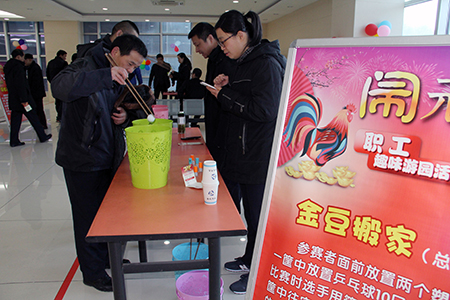 活動從2月8日到11日持續(xù)4天,共設置了“趕雞入欄、迷你投籃、飛鏢搶分”等10個娛樂項目。這些活動項目趣味性強、參與門檻低,引起了廣大職工的濃厚興趣,大家摩拳擦掌、躍躍欲試。在“掌聲明珠”活動場地上,選手們手持放有乒乓球的乒乓拍,快速穩(wěn)健地繞乒乓桌行走;再看“金豆搬家”項目,一個個動作靈活,手法穩(wěn)準,很快就完成了任務,贏得了高分?;顒蝇F(xiàn)場氣氛熱烈,到處充滿了歡聲笑語,爽朗的笑聲一浪高過一浪,不斷將游園活動推向高潮。當大家最后從工作人員手中接過活動獎品時,個個都笑容滿面地說著“開心”和“感謝”。