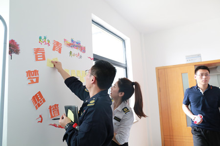 活動(dòng)開場(chǎng),首先由公司團(tuán)支部委員吳夏曦為大家講述了奮戰(zhàn)在一線的青年團(tuán)員的先進(jìn)事跡。隨后,王玲艷、洪霞霞、紀(jì)欽鑫三位青年團(tuán)員分別為大家上了一堂微型黨課。在聆聽了從公交人的祖輩為了解放新中國(guó)負(fù)重拼搏,不惜犧牲自己的英勇事跡,到幾代公交人為了公交事業(yè)的發(fā)展兢兢業(yè)業(yè)、追夢(mèng)奔跑的逐夢(mèng)歷程,再到現(xiàn)如今我們公交隊(duì)伍中的一樁樁感人事跡后,在場(chǎng)的人員深深感受到了當(dāng)代公交人奮發(fā)向上、積極進(jìn)取的昂揚(yáng)斗志。最后,與會(huì)人員紛紛拿起手中的筆,在紙上把自己的感悟與體會(huì)、制定的小目標(biāo)寫了下來,并親自貼上了我們的“青春夢(mèng)想墻”上。“發(fā)揚(yáng)‘五四’精神,初心聚力,匠心前行,不辜負(fù)我們這個(gè)偉大時(shí)代?!薄芭Ω冻觯趭^耕耘,熱情投入,執(zhí)著無悔,用心凝結(jié),締造精彩?!薄@不僅僅是個(gè)人的夢(mèng)想,更是全體公交人用心描繪的一幅五彩斑斕的公交夢(mèng)。