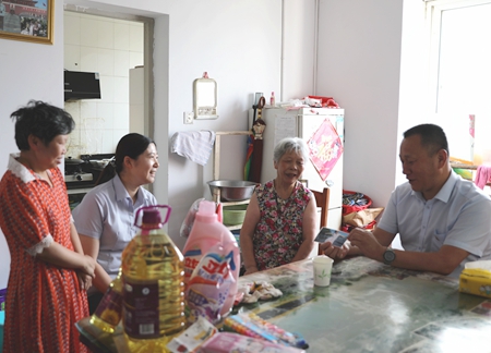 七一前夕,在中國共產(chǎn)黨建黨98周年到來之際,6月27日下午,軌道公司黨支部黨員志愿者走訪慰問長水街道由拳社區(qū)府南花園低保戶費美玲家庭,為她們送上黨的關懷和溫暖,并送去了生活用品和慰問金等。