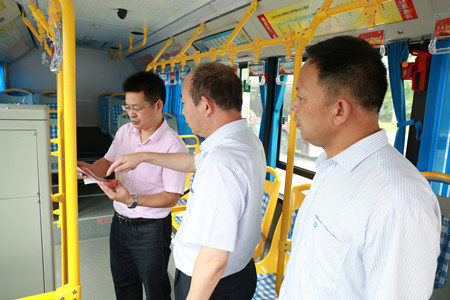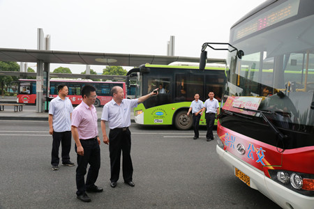 在公交公司,何宇健一行首先到高鐵嘉興南站公交樞紐站開展了現(xiàn)場調(diào)研,對71路紅色公交專線打造情況進行了深入了解,現(xiàn)場查看了71路公交車身、內(nèi)飾等紅色文化主題宣傳情況,并親自上車體驗紅色文化渲染氛圍。在聽取公交公司具體介紹后,何宇健對公交公司“獻禮七一建黨節(jié),我和公交有個約會”專項活動開展情況予以肯定,并希望71路在現(xiàn)有紅色文化宣傳基礎(chǔ)上,更上一層樓,精益求精打造具有鮮明主題特色和豐富文化內(nèi)涵的紅色公交專線。在隨后的調(diào)研座談會上,公交公司圍繞2018年上半年度經(jīng)營生產(chǎn)情況、重點工作開展情況、存在問題和困難以及下半年工作思路,向何宇健一行進行了詳細匯報。何宇健對公交公司上半年度總體工作開展情況及所做的努力予以充分肯定,并對下一步工作思路提出了五點要求:一是要在年度重點工作上謀思路、想對策、挖亮點、出實效,強化與各區(qū)政府的溝通銜接,充分運用公交智能化建設(shè),探索定制公交、區(qū)域環(huán)線公交等,持續(xù)深入推進公建民營模式,在公交線路或營運分公司開展試點,深挖內(nèi)潛,推進企業(yè)降本增效工作。二是要加快科技公交、智慧公交建設(shè)步伐,進一步擴展線上充值渠道,建設(shè)公交APP,實現(xiàn)市區(qū)“銀聯(lián)云閃付”公交應(yīng)用功能。三是要站在全局和長遠角度,進一步完善國際商務(wù)區(qū)停保場規(guī)劃建設(shè)工作。四是要繼續(xù)發(fā)揮黨建引領(lǐng)優(yōu)勢,黨建工作與企業(yè)治理有機融合,不斷增強公交吸引力,提升市民滿意度。堅定有力抓好黨風(fēng)廉政建設(shè),推動全面從嚴(yán)治黨落到實處。五是要強化安全生產(chǎn)工作,納入公司重要議事日程,做到常抓不懈、警鐘長鳴、一抓到底。