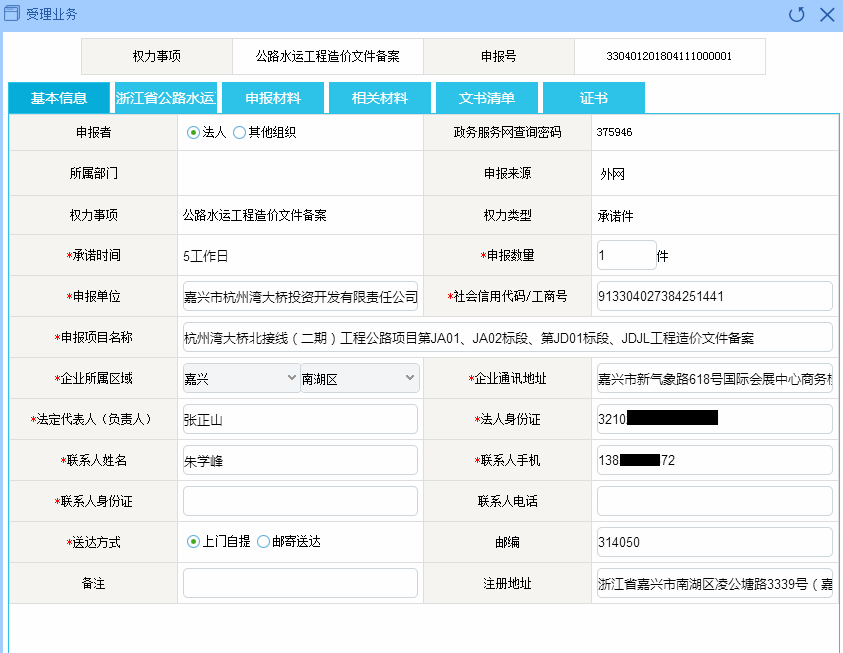灣北二期工程第JA01、JA02標段、第JD01標段、JDJL工程造價文件備案服務(wù)信息