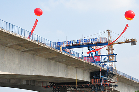 灣北二期工程跨紅旗塘連續(xù)梁全橋順利合攏