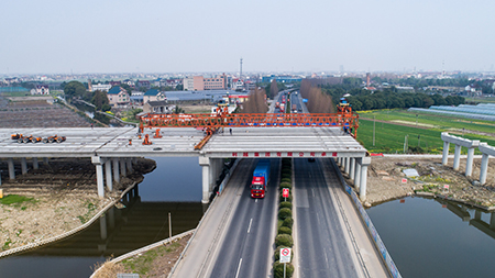 灣北二期項目完成跨320國道橋梁板架設(shè)