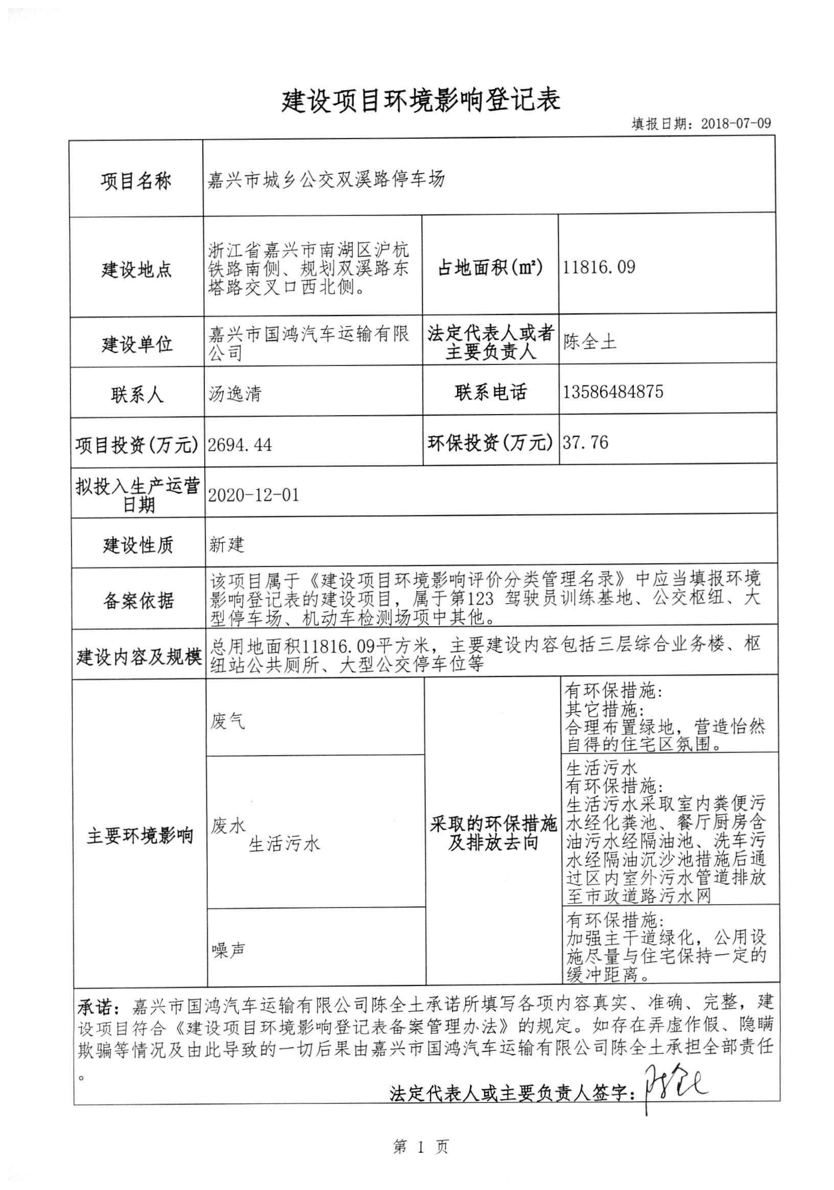 嘉興市城鄉(xiāng)公交雙溪路停車場建設(shè)項(xiàng)目環(huán)境影響登記表